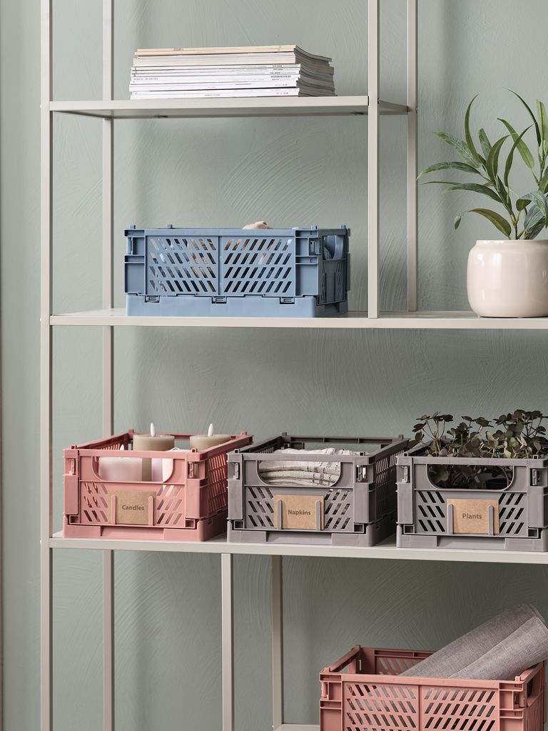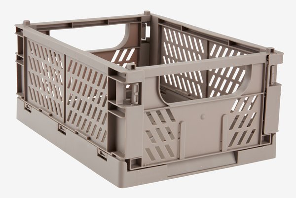 Faltbarer Korb aus Kunststoff (100% recycelt) in einem warmen Grauton und einem stilvollen Design, das in jedes Zuhause passt. Ideal zum Aufbewahren von allem, von Büromaterialien und Hobbyartikeln bis hin zu Accessoires und kleinen Gegenständen im Badezimmer. Der Korb ist stapelbar und bietet eine intelligente und platzoptimierende Lösung. B25 x L34 x H15 cm