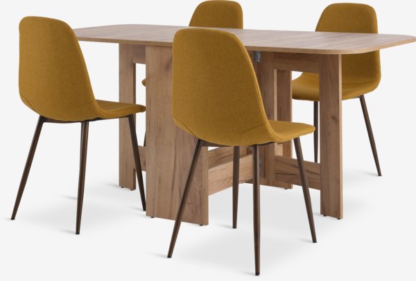 ALLING L100/163 Tisch Eiche w. + 4 JONSTRUP Stühle curry