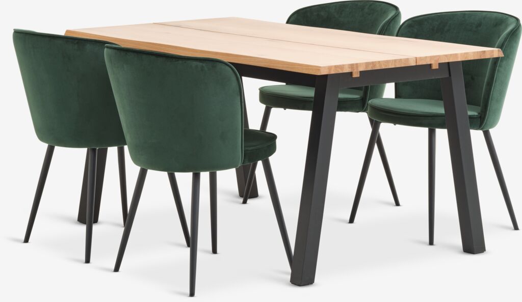 SKOVLUNDE + RISSKOVSKOVLUNDE L160 Tisch eiche natur + 4 RISSKOV dunkelgrün