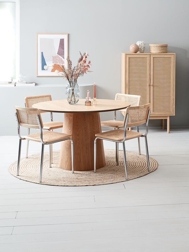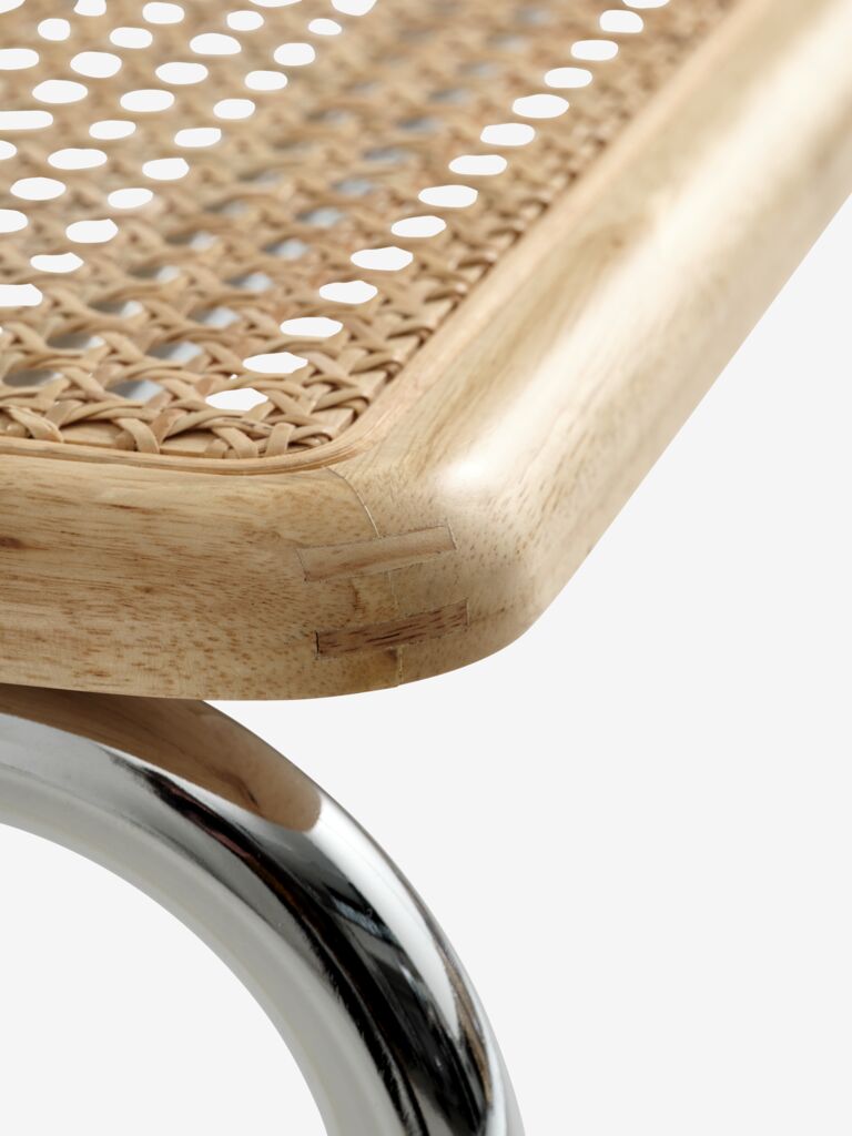 | Material | Sitz: Rattan, Massive Hevea, Rückenlehne: Rattan, Massive Hevea, Bein: PP (Polypropylen), Stahl |