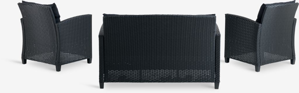 Das Gartenlounge-Set besteht aus einem 2-Sitzer Sofa, 2 Sesseln und einem 1 Tisch. Die zusammengehörigen Loungemöbel bieten bequem Platz für 4 Personen.