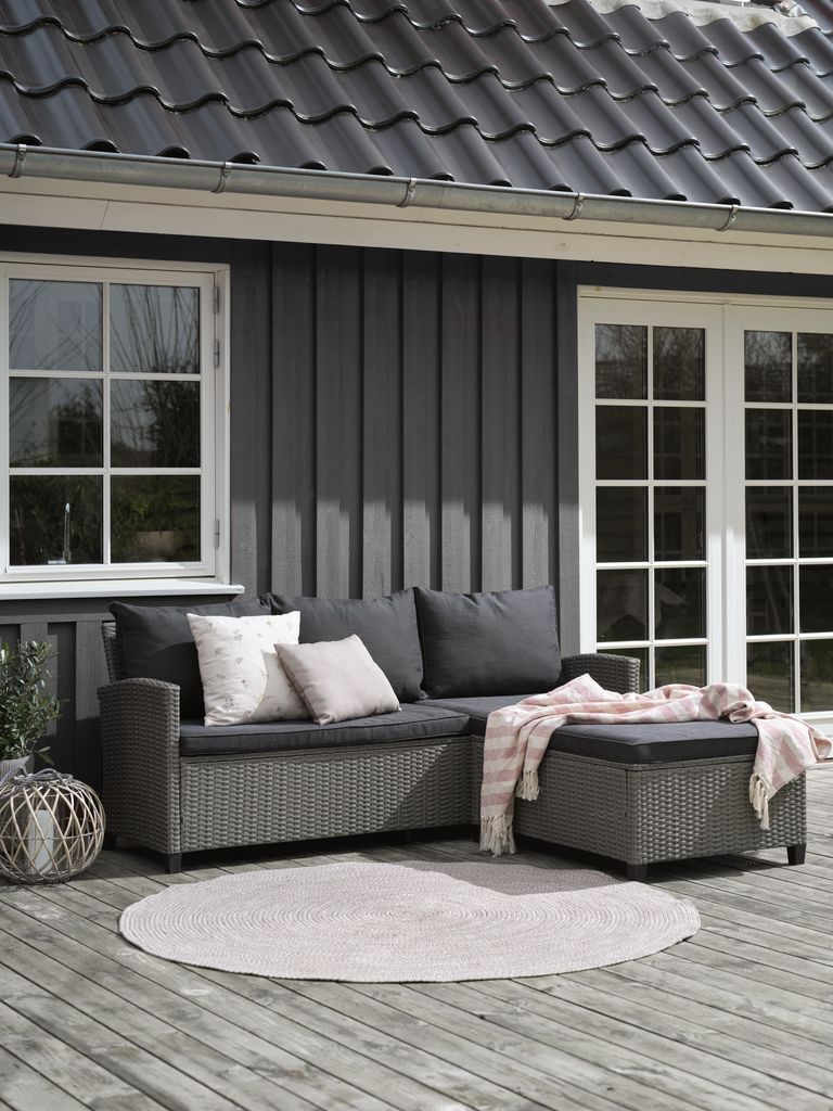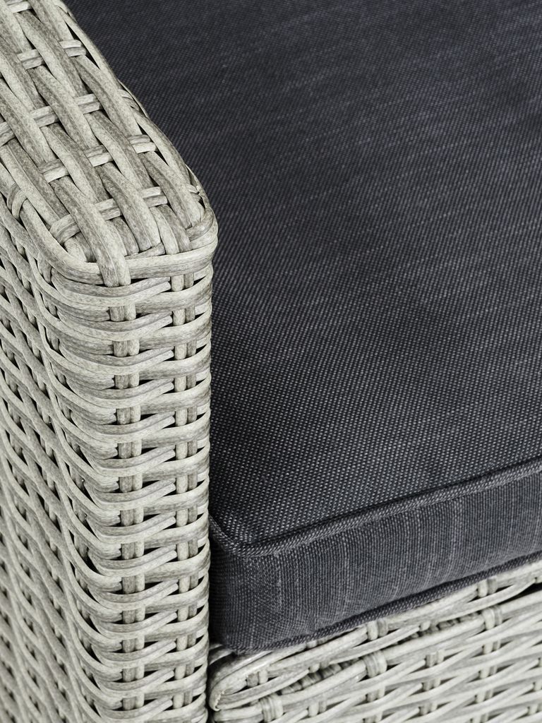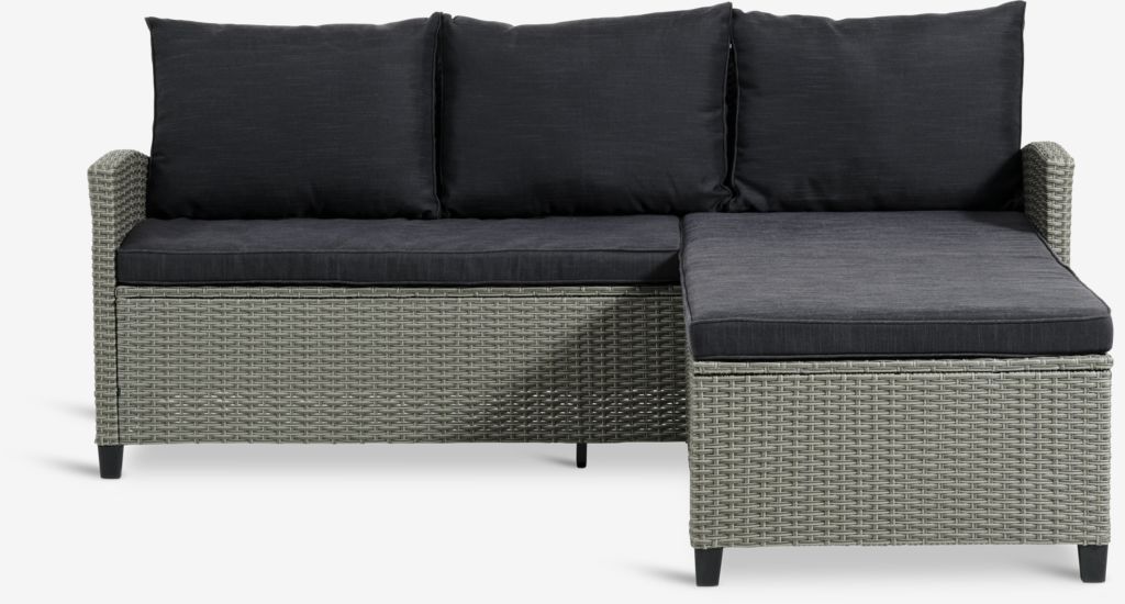 3-Sitzer-Lounge-Sofa mit Chaiselongue aus Stahl und Polyrattan. Kann spiegelverkehrt aufgebaut werden. Inkl. hochwertiger Kissen mit strapazierfähigem Bezug. B187 x H76 x T50/159 cm