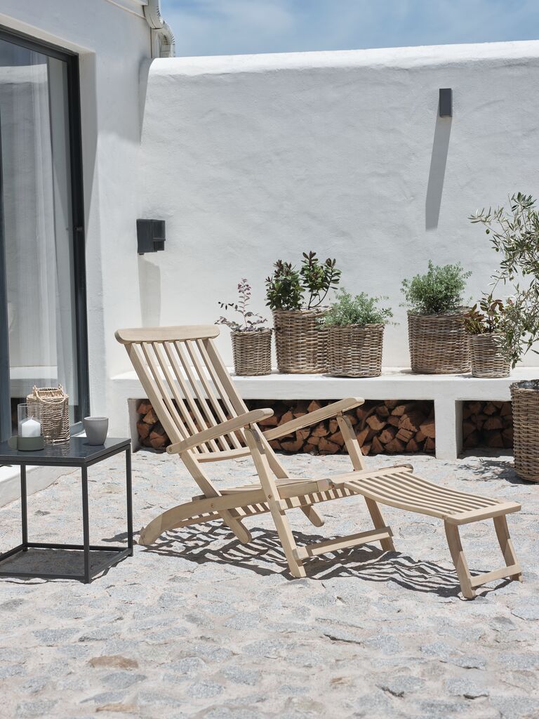 Kippliege aus geöltem FSC®-Hartholz. Zusammenklappbar. B60 x H98 x T155 cm
