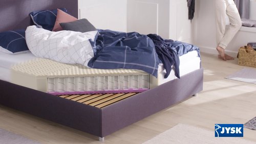 22 cm hohe, wendbare Federkernmatratze 90x200 cm mit zwei Härtegraden und 268 Mini-Taschenfedern/m², unterteilt in 7 Komfortzonen, die eine passgenaue, ergonomisch korrekte Unterstützung bieten. Die Matratze ist mit Polyätherschaum gepolstert. Waschbarer Bezug mit einer weichen, dicken Steppung.