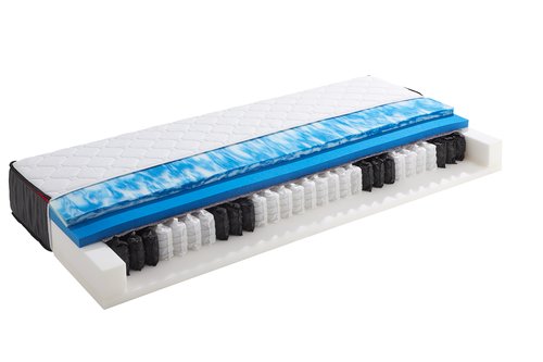 26 cm hohe, wendbare Federkernmatratze 90x200 cm mit zwei Härtegraden und 240 Taschenfedern/m², die in 7 Komfortzonen unterteilt sind und eine einzigartige, ergonomisch korrekte Unterstützung bieten. Die Matratze ist auf der einen Seite mit Polyätherschaum und auf der anderen Seite mit druckentlastendem AIR-Memoryschaum und Gelschaum gepolstert. Der AIR-Memoryschaum passt sich schnell und präzise den Konturen deines Körpers an, auch in einer kühlen Schlafumgebung. Waschbarer Bezug mit einer leichten Steppung und feuchtigkeitstransportierendem TENCEL™ Lyocell.