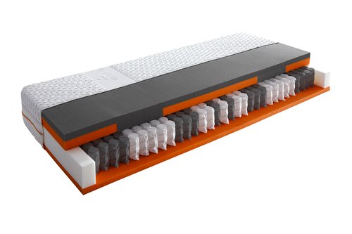 26 cm hohe, wendbare Federkernmatratze 90x200 cm mit zwei Härtegraden und 434 Multi-Taschenfedern/m², unterteilt in 7 Komfortzonen, die eine einzigartige, ergonomisch korrekte Unterstützung bieten. Gepolstert mit Geltex, einer einzigartigen Kombination aus druckentlastendem Gel und atmungsaktivem Schaumstoff. Waschbarer Bezug mit feuchtigkeitstransportierendem Lyocell.