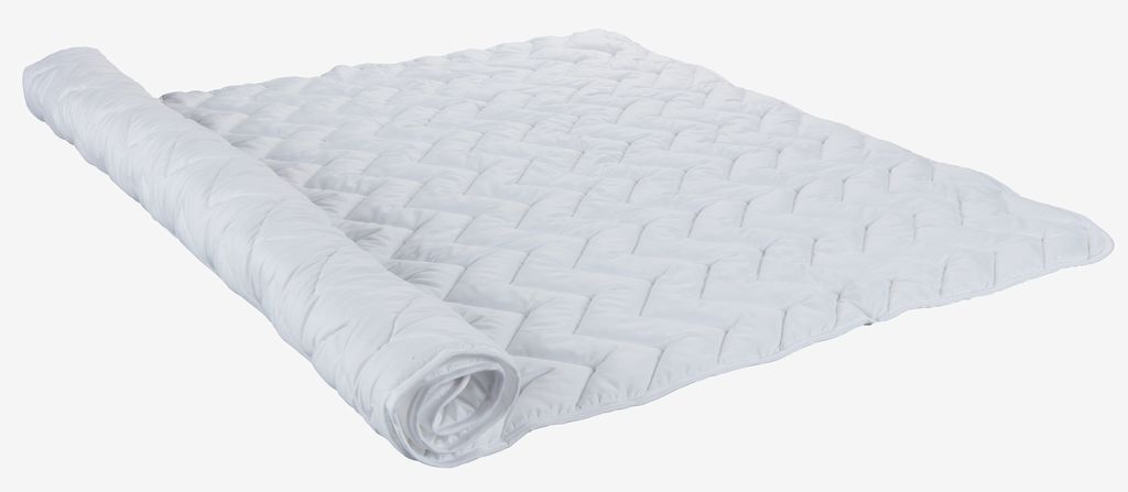 Waschbarer Matratzenschoner 140x200 cm mit dicker Steppung aus silikonisierter Hohlfaser (100% recycelt). Bezug aus weicher Mikrofaser aus 100% Polyester (100% recycelt). Elastische Eckbänder.