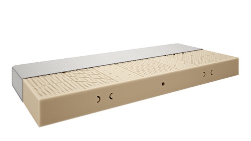 19 cm hohe Schaumstoffmatratze 90x200 cm mit 7 Komfortzonen für eine einzigartige, ergonomisch korrekte Unterstützung. Kern aus 18 cm atmungsaktivem Latex, der überschüssige Wärme effektiv ableitet. Waschbarer Stretch-Bezug.