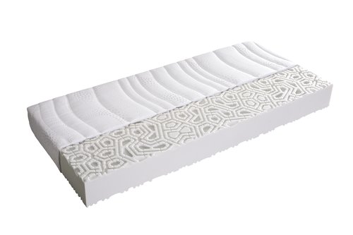 22 cm hohe Schaumstoffmatratze 90x200 cm mit 7 Komfortzonen, die eine einzigartige, ergonomisch korrekte Unterstützung bieten. Kern aus 20 cm Polyätherschaum. Waschbarer Bezug mit einer dicken Steppung.