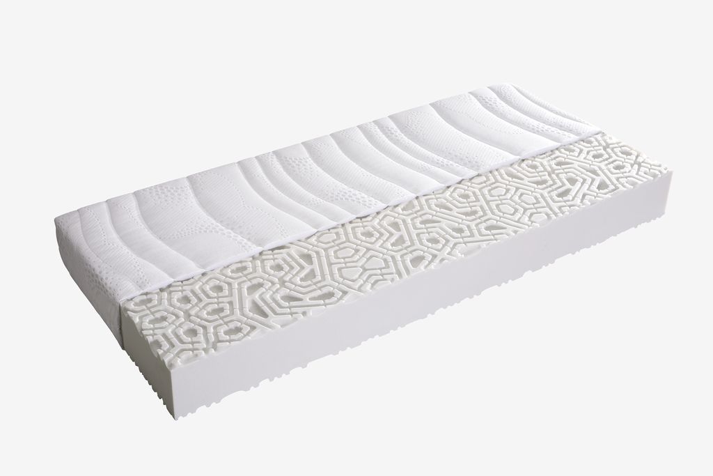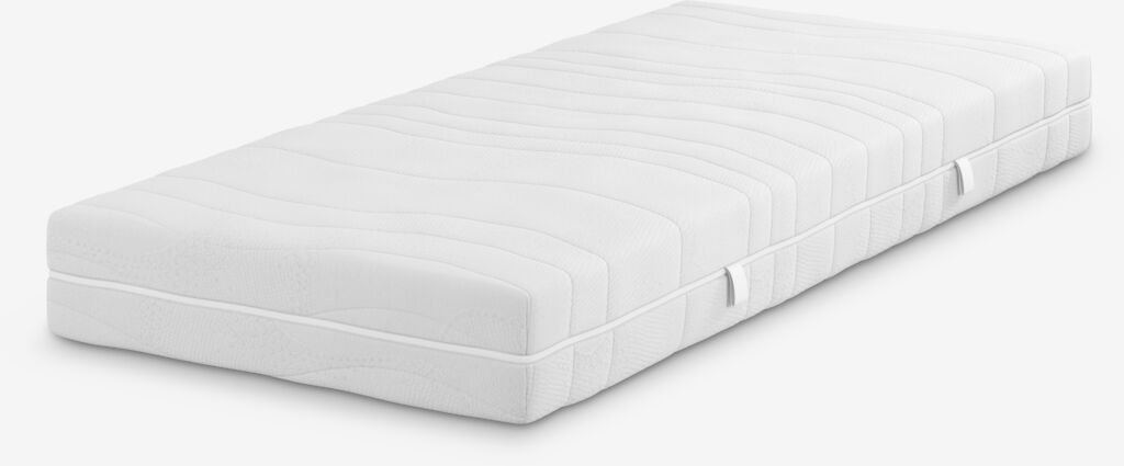 22 cm hohe Schaumstoffmatratze 90x200 cm mit 7 Komfortzonen, die eine einzigartige, ergonomisch korrekte Unterstützung bieten. Kern aus 20 cm Polyätherschaum. Waschbarer Bezug mit einer dicken Steppung.
