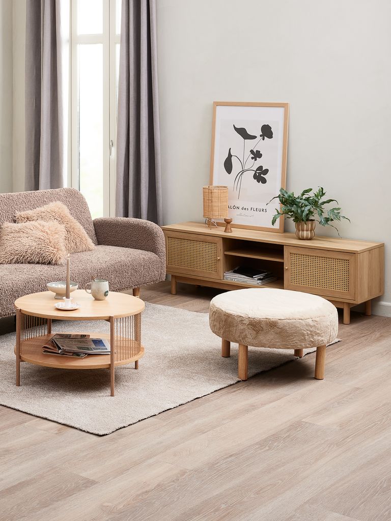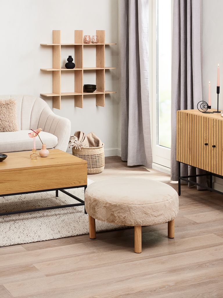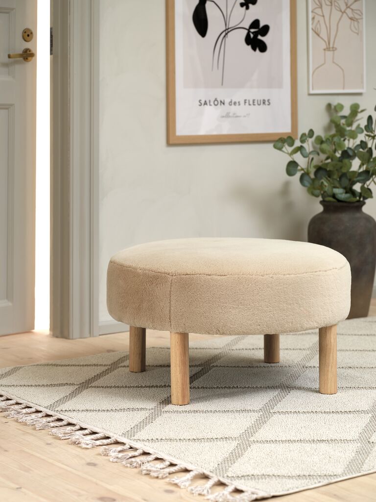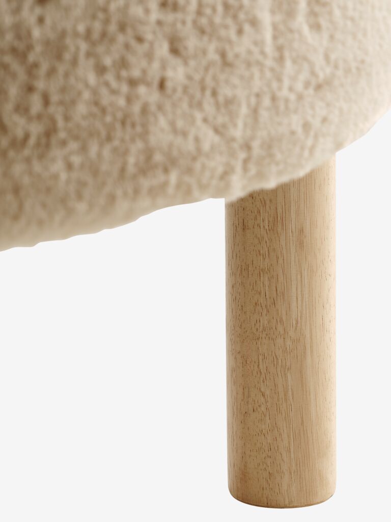 Pouf RAMSDAL Ø70 Teddystoff beige/Eiche natur